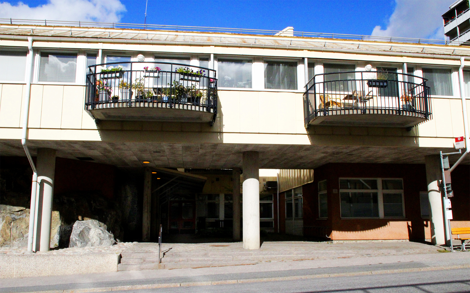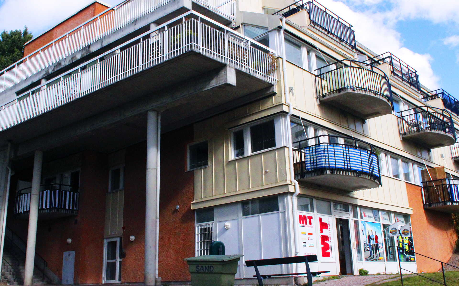 Gamla Värmdövägen byggdes 1984 och 2018 tillkom 39 ytterligare lägenheter. Finntorpsvägen byggdes 1992. Sammanlagt finns nu 227 lägenheter på en yta av 14 239 kvm. Fasaden är av plåt, puts och tegel och taket av plåt och papp. I fastigheterna finns förråd, tvättstugor, balkonger, garage, p-platser, cykelrum, fiber (Telenor), uteplatser och hissar. Husen värms med fjärrvärme och ventlileras med mekanisk till- och frånluft.