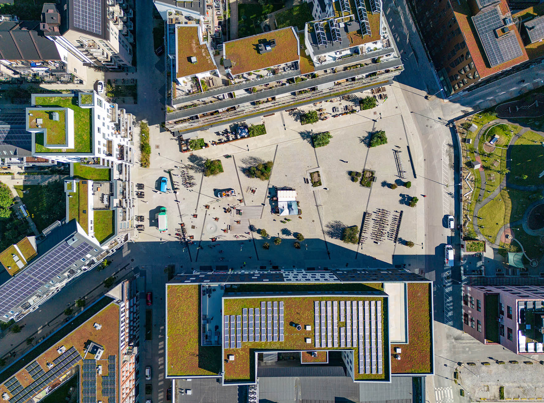 Det ska sägas att på Masttorget 6 så har vi redan kommit en bit på vägen. Huset är en del av Masthusen – Sveriges första hållbarhetscertifierade stadsdel enligt det världsledande systemet BREEAM Communities. Även Masttorget 6 är enskilt certifierat av BREEAM, på nivån ”Excellent”. Här gäller låg energiförbrukning och egen produktion av värme, kyla och el. Energi hämtas från 24 borrhålslager under huset och dagsljus- och närvarostyrd belysning, kyla och ventilation gynnar såväl hälsa som klimat. Faktum är att fastighetens energianvändning ligger 50 % under dagens kravnivå för nyproduktion!